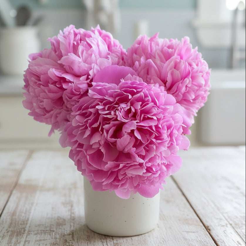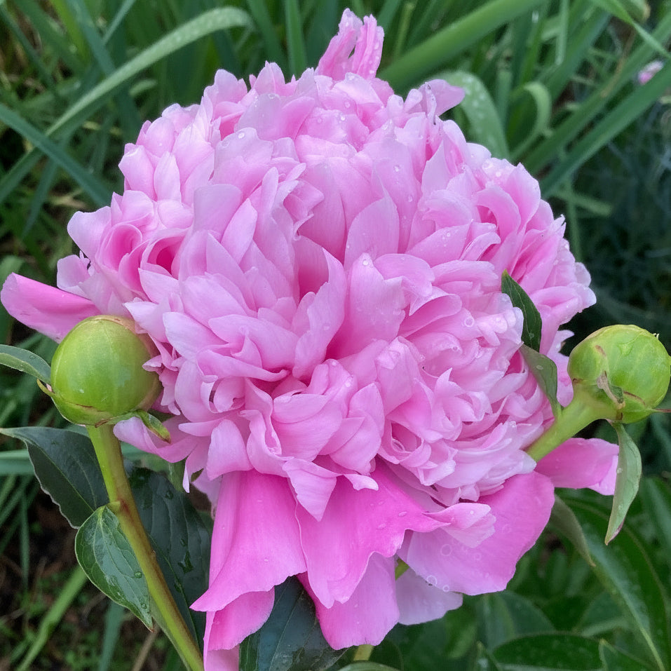 ‘Mon Jules Elie’ is such a wonderful colour, in my opinion, he blends with everything, and I have to stop myself planting him everywhere. Lavender pink with hints of mauve, the dome of the anemone-type bloom gets taller and taller as it matures, reminding me of an extravagant beehive hairdo. In the sunlight, the petals gleam like satin. Flowering mid season, the flowers have a pleasant fragrance and are excellent for cutting. Awarded the Royal Horticultural Society's Award of Garden Merit. 90cm.