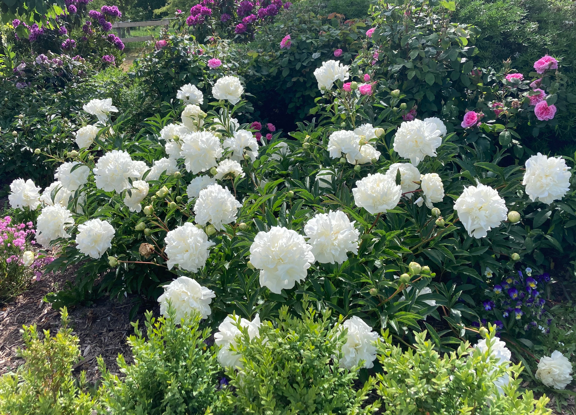 One of the purest white peonies I grow, with an abundance of large, sweetly-scented flowers that contrast wonderfully against the fresh green foliage. A wonderful cut flower and a vigorous garden performer with an exceptionally long blooming season commencing early to mid-season. 80cm.