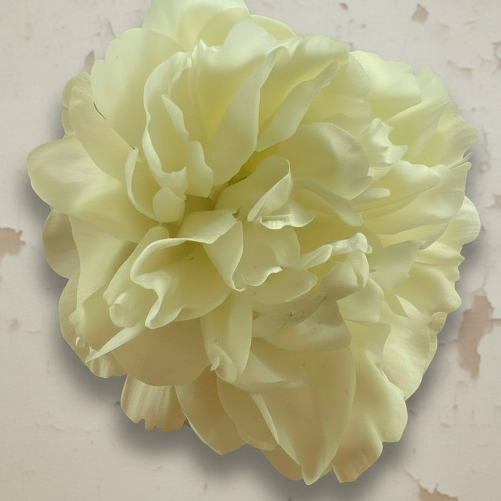 An early flowering hybrid with uniquely-toned blooms that have a satin-like texture. The large, semi double to double flowers open pale primrose and fade to a translucent ivory, a lovely contrast with the simple gold centre. A vigorous bush, and a very long-lasting cut flower with the virtue of dropping very few petals as it ages. Definitely a great prospect for drying! 85cm.